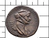 S P Q R OPTIMO - PRINCIPI // S - C // ALIM IT[AL]. Annona in Vorderansicht nach l., im l. Arm ein Füllhorn, in der ausgestreckten r. Hand Getreideähren. Darunter ein Knabe in Vorderansicht nach r., mit Toga und Schriftrolle, zu Annona aufblickend. Mehrere Einhiebe, v.a. im Bereich der beiden Figuren. |