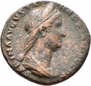 Rückseite: VESTA // S C. Vesta thronend nach l., in der ausgestreckten r. Hand das Palladium, im l. Arm ein Zepter.